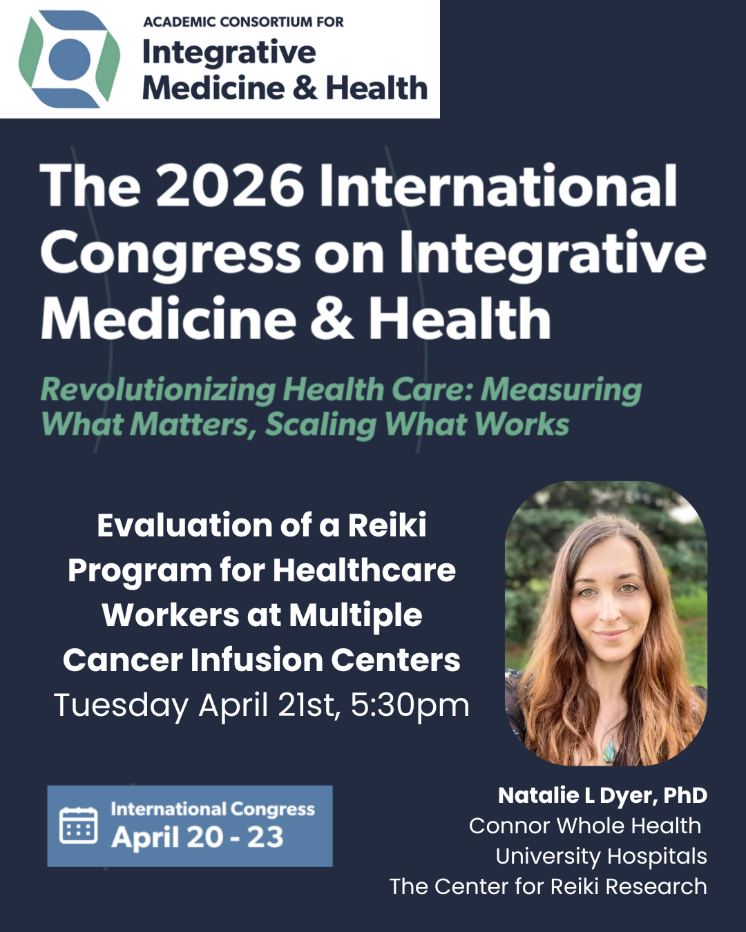 I will be speaking about Reiki research in the healthcare setting at the International Congress for Integrative Medicine and Health in Salt Lake City, UT on April 21st 2026